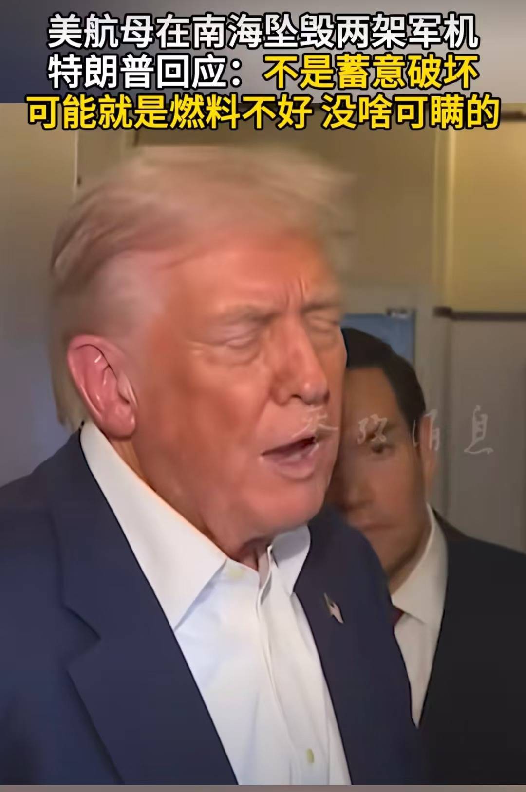 10月28日,据北京日报报道,10月26日,美国两架军机接连在南海坠毁,特朗普27日从马来西亚飞往日本,在空军一号上对记者发表讲话时称,这两起连续坠机事件“非常不寻常”,并暗示可能是燃料出了问题。